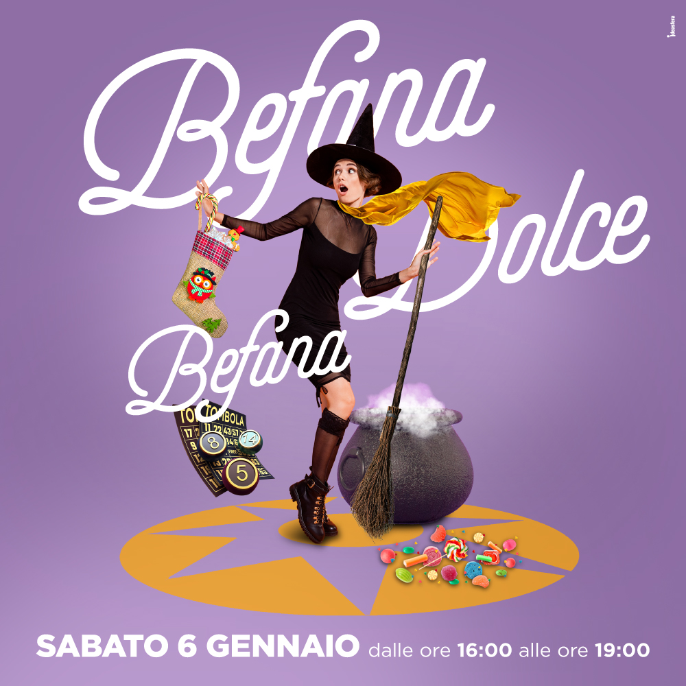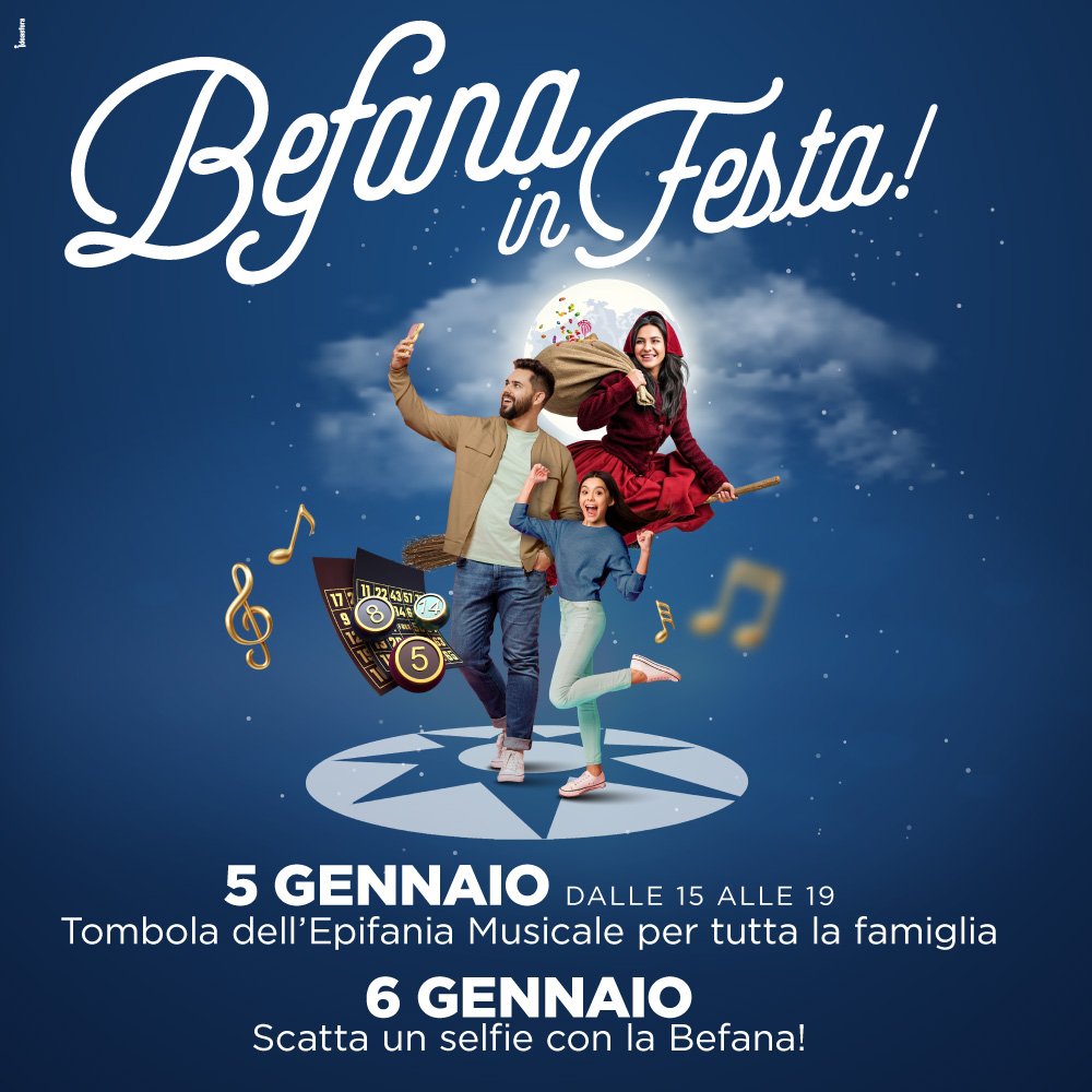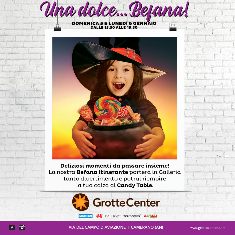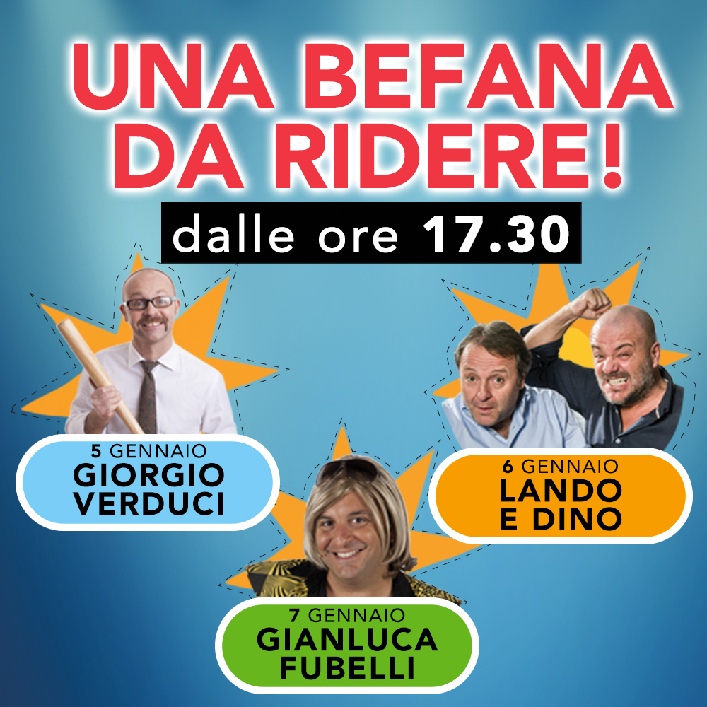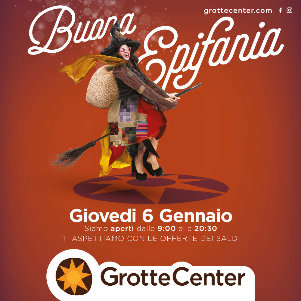 Grotte Center, 1 befana, 3 comici, tante risate e offerte imperdibili.