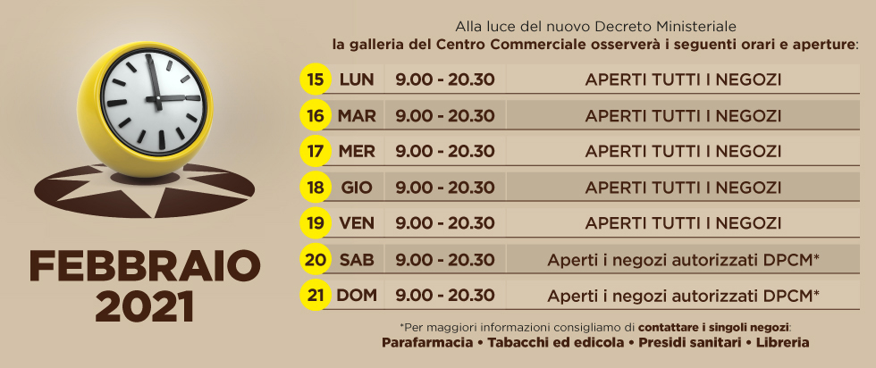 Orari dal 15 al 21 Febbraio