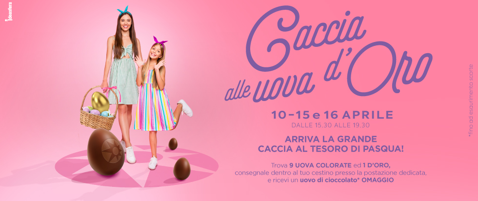 Caccia alle uova d’oro! Domenica 10, Venerdì 15 e Sabato 16 Aprile, dalle 15:30 alle 19:30 il Centro si trasforma in un’area di gioco!