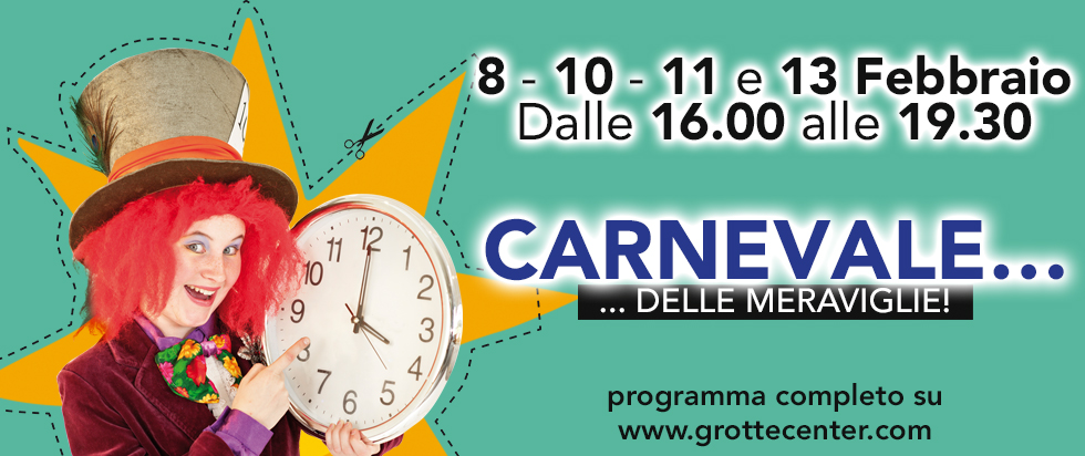 Arriva a GROTTE CENTER il fantastico mondo di.. ALICE NEL PAESE DELLE MERAVIGLIE per festeggiare Carnevale con noi nelle giornate di GIOVEDI’ 8, SABATO 10, DOMENICA 11 e MARTEDI’ 13 Febbraio a partire dalle ore 16:00!