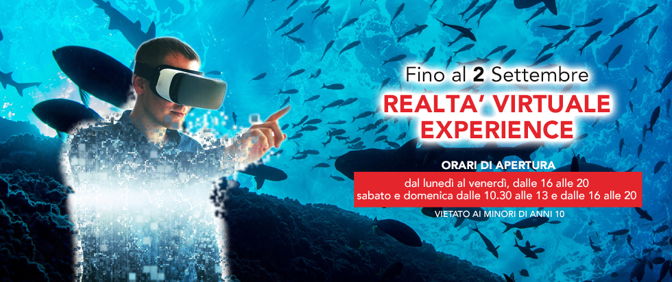 Dato il successo, la Realtà virtuale si prolunga fino a Domenica 2 Settembre! Approfitta per vivere un'esperienza magica! Immergiti nel fantastico mondo oceanico. Scopri gli animali degli abissi!